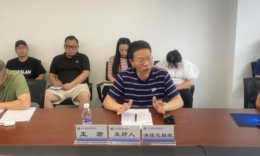 為規(guī)范公司生產(chǎn)安全事故應(yīng)急管理和應(yīng)急響應(yīng)程序,提高應(yīng)對(duì)突發(fā)事件應(yīng)急救援響應(yīng)、協(xié)調(diào)配合及解決問題能力,6月29日,設(shè)計(jì)公司組織開展“生產(chǎn)安全事故綜合應(yīng)急預(yù)案演練桌面推演”活動(dòng)。公司分管安全生產(chǎn)工作的副總經(jīng)理王君擔(dān)任本次演練的總指揮,并主持會(huì)議。安全環(huán)保部、紀(jì)檢監(jiān)察部、人力資源部、后勤服務(wù)部、勘察分院等部門相關(guān)人員參加演練,公司各部門、各子公司選派30余人到場觀摩。