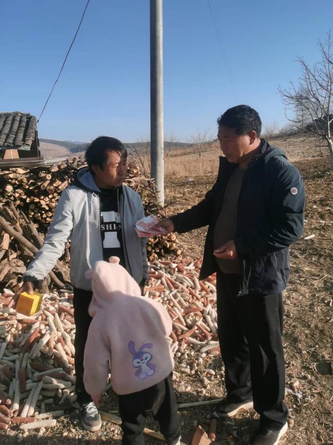 (村書記胡剛轉(zhuǎn)交王毅給遇難家屬的慰問金)